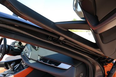 Valószínűleg tehát némileg kompromisszum, hogy az i8-ból nyitott autó is készült, de nem baj. Így például a BMW-sek nem tudtak tökéletesen szélmentes utasteret csinálni, picit mindig mozog a levegő, pont annyira, hogy ne érezzem sterilnek. A két hátsó hupli között van egy kis üveg, ami csukott tetőnél valójában a hátsó szélvédő. Ezt is lehet elektromosan mozgatni, és ki lehet kísérletezni, hogyan nem lesz a legnagyobb a huzat: ha leengedjük, akkor sem, ha teljesen felemeljük, akkor meg betereli a levegőt, az igazság valahol a két állás között van.