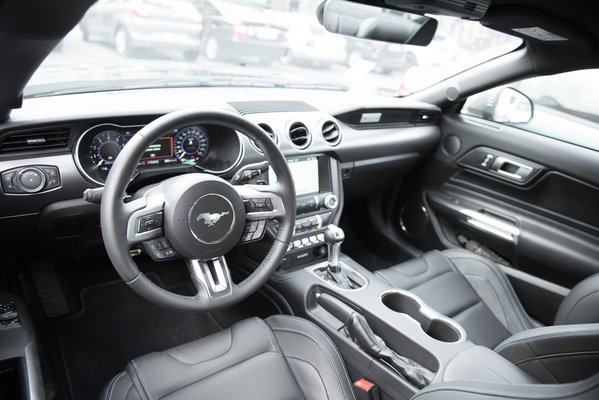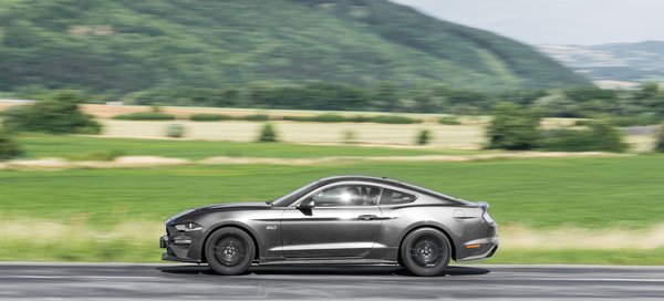Dizájnban afféle facelift-változások vannak, csak a műanyag feliratú pólóban veretik a csajok. Egy változás tűnt fel: a fényszóró alatti helyzetjelző és ködlámpa megméretett és bárgyúnak találtatott, ezért egyfajta méregfog motívum tűnt fel a szája sarkában. Az ipari formatervezés nem zoológia, hiszen a vadló növényevő, páratlan ujjú patás, a kígyónak meg se ujja, se patája. Van, mikor adnak ilyesmire a formatervezők, a Dodge Vipernek például kifejezetten csörgőkígyós, háromszögletű feje lett, a Mustangon viszont az állatvilág apró finomságaira kevésbé fogékony dizájnerek dolgoztak. Nem baj, mert a forma amúgy jó, a negyedik évében sem fáradt el, illetve amennyiben ez lehetséges, akkor egyenesen sőt.
