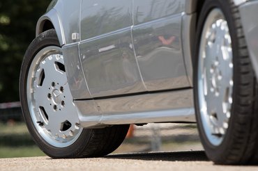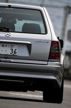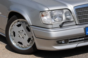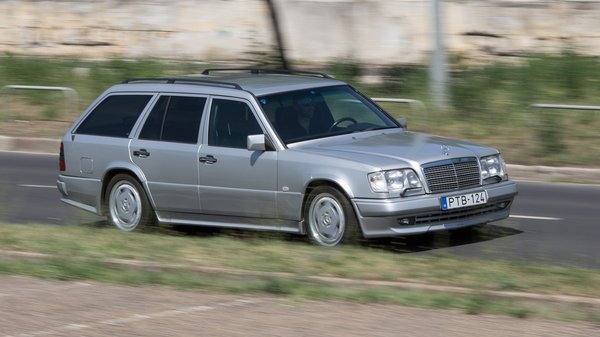A kormány persze olyan, mint a 124-eseké – középen lassú és komótos, a széleken váratlan hirtelenséggel betekeri a kerekeket, hogy egészen hihetetlen parkolóhelyekre segítsen behúzni a kocsi elejét. Cseppet sem sportos, de kiszámítható és barátságos. A változtatásokat inkább a futóművön érezni – a 124-es kombiknak mindig volt egyfajta lebegős stílusuk, amiből itt szinte semmi se maradt; az AMG-verzió éppen csak hogy nem ráz, olyan szilárdan van az úton. 124-es élmény ez is, felismerhetően, de valami nagyon más. Nagyon összeszedett, már szinte másik típus.