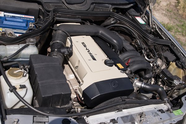 Persze nagyobb a szívótraktus összes járata, öblösebb a légszűrőhöz vezető cső, tágabbak a kiömlők, más a kipufogó oldali vezérműtengely és alaposan utánamentek a befecskendezővel is az igényeknek – a végén 231 lóerő helyett 272-t kaptak. Egyben a korszak legerősebb, még szinte gyárinak mondható Mercedes-kombiját is – hiszen a csupán hét lóerővel erősebb, gyári E420 és a 48-cal erősebb E500 egyikéből sem létezett T változat, azaz kombi.