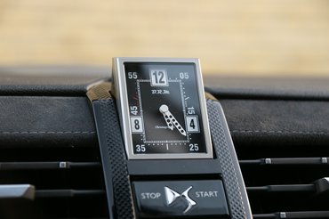 A menü átlátható, szép, és ugyan alkalmanként megröccen, elakad, de alkalmas az együttélésre, hiába nem egy mérce például egy Audiéval. Egyértelmű közönségkedvenc viszont a szellőzőrostélyok közül motorindításra előforgó klasszikus, analóg óra. Ez egy B. R. M. ami nekem mint versenyautó-gyártó volt meg, de nem, a három betű a Bernard Richards Manufacture rövidítése. A cég 2003 óta gyárt borzasztóan drága karórákat, a 3,4 millió forintért kínált modelljük még inkább a kínálat közepe. Tekintve, hogy a DS 7 alapára valamivel 10 millió forint felett lesz, nem tartok tőle, hogy valódi automata szerkezet kerül majd a műszerfalba. A márkára jellemző lyuggatott mutatók és extravagáns számlap – valószínűleg ez jön az órás cégtől, hasonlóan, mint a Mercedes-Schaffhausen együttműködésnél, ahol a mechanika egy taivani gyártósorról jön. Ettől függetlenül már az is show, ahogy kinyílik, meg maga a vekker is mutatós.