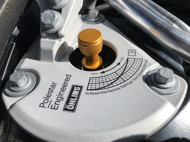 Az igazán nemes hardver viszont az Öhlins futómű, szép aranyszínű gátlókkal, ezek csillapítása kézzel állítható a rugótornyok tetején, közvetlen a toronymerevítő konzoljának ölelésében. Biztos vagyok benne, hogy négy ilyen gátló ára egy ergyább felszereltségű Dacia Loganéval vetekszik, ahogy arra is fogadni mernék, nincs az a tulaj, aki valaha is hozzájuk nyúlna. Ez azoknak az egyszerű autóbuziknak szól, akiknek vélhetően sosem lesz pénze a Polestarra.