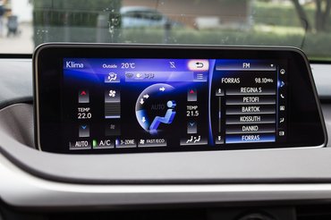 A kormány mögött sincs újdonság, ez ugyanaz az RX, ami két éve már itt van 11 centi mínuszban. A klímapanel tetején ott az analóg óra, amiről nagyon szeretnénk hinni, hogy jópofa trollkodás, de a valóság inkább az, hogy vannak piacok, ahol kötelező kellék. A 12,3 colos giga display fölötte viszont – amiről még jót nem olvastam – nagyon bejött. Grafikában tényleg van egy japános leszarom a korstílust hangulata, de amíg ez a széles/lapos kijelző ilyen jól belakja ott fent a teret úgy, hogy nem takar ki a látótérből, kit zavar, ha unalmas grafikusokkal színeztetik a pixeleket. Ez a joystickos megoldás, amivel itt vezérelhető, ráadásul könnyebben megszokhatónak tűnik, mint a tapipad. Bár egy hét együttlét itt se volt elég a készségszinthez.