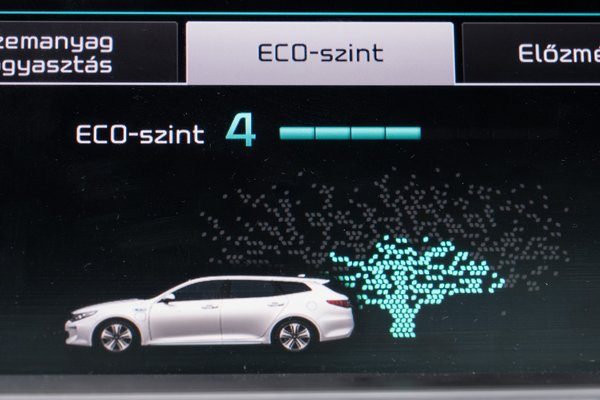Munka után a gyerekek nélkül sportosabbra venné a figurát, de hamar ráun. Ezzel az autóval megfontoltan jó közlekedni. Arra is való. Kényelmes a futómű, és ugyan kanyarban hozza a kötelezőt, de csak hogy több lendületet lehessen átmenteni az egyenesbe. A pazarló gyorsításokról is lenevelte már rég a fokozatosan lombosodó digitális fa a műszerfalon. Ha valaki egyszer megízlelte az ECO-szint hetes fokozatát, nem fog holmi nyúlós gyorsulási élményért kéken világító levélkéket veszélybe sodorni.