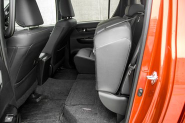 Hogy az ülés alatti rekeszről ne is beszéljünk - persze az alvázas, magas kialakítás eléggé megszabja a terjeszkedést. A hátsó ülések alatt itt is, mint kb. mindegyik pickupban, van két rekesz. Az egyikben rendszerint az emelő lakik. A másikba lehet bepakolni apróbb dolgokat, csak arra kell vigyázni, úgy ne járjon az ember mint én ezzel a Hiluxszal.