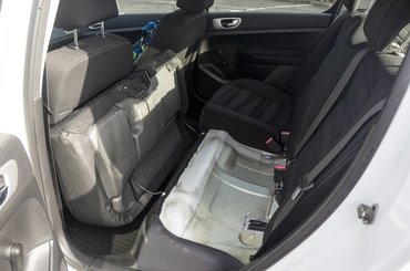 Bent is látszik, hogy használták az autót, de semmi durva. A kormány kicsit megkopott, az ajtóbehúzó környékén látszik egy kis hámlás, nehezen mászik vissza a biztonsági öv a helyére és egy picit felgyűrődött a vezetőülés kárpitja (sajnos nem javítható, mert a szövetet a szivacsra ragasztották), de ennyi. Azt hiszem, ezzel bárki kiegyezne egy tizenkét éves autón. A kályhaezüst betét még ma is szép a középkonzolon, sok a tárolórekesz, úszunk a fényárban, elöl-hátul kényelmesen elférni: a 307-esben ugyanolyan kellemes létezni, mint egykor. Persze, nincs 2000-es évekből származó Peugeot elektronikai glitch nélkül: elsőre összevissza villódzott a hátsó beltéri világítás, de aztán magától elmúlt. A rádió viszont sajnos folyamatosan elmászott, valahogy mindig a Kossuth Rádiót akarta hallgattatni.