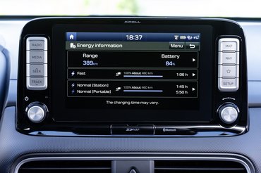 A Kona váltóáramról maximum 7,2 kilowatttal tölthető óránként, a Leaf csak 6,6 kilowatttal. Villámtöltőnél a Kona csak 80 kW-tal tölthető, a Leaf akár 100-zal is, kár, hogy nincsenek ilyen töltők még Magyarországon.