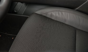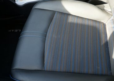 A Nissan ülése finoman megmunkált, a kék cérnával varrott műbőrre az autókozmetikás azt gondolta, hogy igazi, annyira élethű.