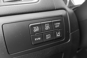 A hóhért nálam itt akasztották, ugyanis nem sűrűn ültem korábban Mazdákban, az indítógombot pedig teljesen kitakarja a kormány mögött lévő bajuszkapcsoló. Pár kilométerrel később jött az újabb égés: hogy nyílik a tanksapka? Nem kulccsal, nem a fedelet nyomkodva, nem a műszerfal alján egy karral hanem....Egy apró, alig észrevehető kallantyúval a padlón, szinte az ülés előtt. Ezek persze csak apróságok, amiket az első pillanat után megszokunk, de vannak olyan idegesítő hülyeségek, melyeken nem lehet változtatni. Az infotainment-rendszer őskövületnek tűnik, de szerencsére érintésre is reagál, és mivel besüllyesztették a műszerfalba, a peremen támaszkodva viszonylag könnyen kezelhető.