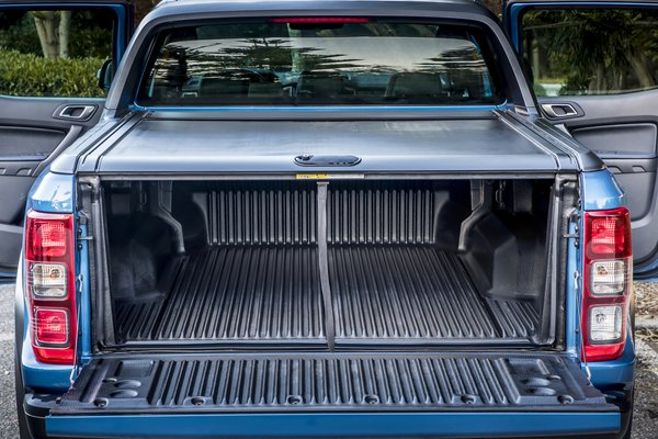 Hogy ezekkel együtt sem lett optikailag otromba, azt egyrészt a széles, kompozit sárvédőíveknek, a giga fellépőknek köszönheti, meg annak, hogy a kerékjárati íveket 285/70-es BF Goodrich gumik lakják. Hogy alig van menetzaj aszfalton, állítólag ennek a mélyen barázdált guminak az érdeme. Nem billeg, nem darabos a sík, tempós úton, ez a Ford szerint a pozícióérzékelős Fox Racing lengéscsillapítók érdeme.