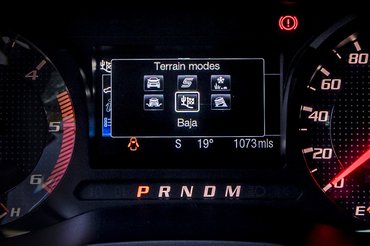 A program csúcspontja a tempós sivatagi kör. A Raptornak van egy kimondottan erre fejlesztett módja: amerikai márka, naná, hogy Baja-módnak hívja, és nem Dakarnak, ahogy mi tennénk. A kettő között annyi a különbség, hogy míg a Dakar egy megbízhatósági, technikabeosztós sivatagi rohanás, a Baja-versenyzés csak rohanás: van két pont a sivatagban, aki előbb ér egyikből a másikba, nyer. A lejtős sziklafalak után itt még lehet értelme a Raptor ikerdugattyús első féknyergeinek (51 mm-es, 20 százalékkal nagyobb átmérőjű dugattyúkkal), és a 332x32 mm-es hűtött első tárcsafékeknek. Hátul 332x24 mm-es hűtött tárcsák vannak, 54 milliméteresre nőtt dugattyúkkal.