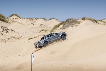 A puha sivatag aljas terep, írhatná a homokba a berber Coelho, ha neki is olyan gondok nyomnák a burnuszát, hogy miközben a skót instruktor szavait követve nagy lendülettel letámadja a homoktengert maga előtt, az utolsó sziklákon megállva vajon vissza kellett volna kapcsolnia a kipörgésgátlót, vagy az a Baja-módot aktiválva már bekapcsolt magától. Persze vannak az életben nyomasztóbb helyzetek, mint egy 2,5 tonnás Ranger Raptorral elásni magad a lisztszerűen finom homokban, kivéve, ha ezt az óceánnal a seggedben teszed. Hogy ott vesztünk-e mind a dagályba fojtva a Rapotorainkkal, később elárulom.