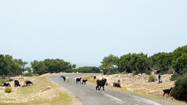 Az első kilométerek még nagyon óvatosak a Ranger Raptorban. A táj az ablakon túl Marokkó, abból is a vidék. Járda ugyan sehol, de az utak pereme ettől még nagyon él. Pásztor, gyerek, kutya, teve, juh, birka, kecske, szamár, ló... sorolta a veszélyeket a vezetős program előtt a minden sajtóút elején kötelezően előadott beszaratás részeként a fordos fazon, de nem gondoltam volna, hogy már az első tíz percben bingóm lesz a marokkói autózás veszélyforrásaiból. Hivatalosan az ország 47 százaléka legelő, amit úgy kell érteni, hogy ahol épp nem homokdűne áll, ott pár száz méteren belül biztosan feltűnik egy patás az úton, vagy az út mellett zöldet keresve. Nagy mázlija a monarchiának, hogy az Atlasz sokat megfog az óceánon születő felhőkből, mert Afrikában ezen a szélességi körön Marokkótól keletre a Nílusig nem nagyon van más, csak homok és élettelen szikla.