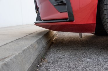 Ezért érzem kicsit feleslegesnek a váltófüleket a kormányra, pláne felárért: motorfék nincs, akármennyit kapcsol vissza az ember, nem ezzel kell pályanapozni. Gyors, csendes utazóautó, amivel mindig azt csinálsz meg az úton, amit akarsz, bármiféle dráma nélkül. Kivéve talán egy dolgot, mert a járdaszegély megközelítése elég rizikós vele, annyira alacsony az orrán az előrenyúló szplitter. Szándékosan egy Aldi parkolójában fotóztam le egy németesen alacsony járdaszegéllyel, mert még ehhez is hozzáér, ha túl közel merészkedünk. Járdára felállás? R-Design kivitelben felejtős.
