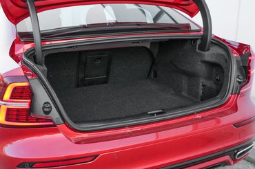Ez a realitás, de mindez semmit sem változtat a tényen, hogy az S60 átkozottul jól sikerült kocsi – hogy is ronthatnák el, ha ugyanazt a méretezhető platformot használja, mint az összes 60-as és 90-es Volvo? Még pár centivel hosszabb is, mint az új 3-as BMW, pedig már annál is hüledeztünk, hogy nemrég még az 5-ös volt ekkora. Igaz, a Volvo S60 formailag egy kicsit szeretne kupélimuzin lenni, és ettől ugyan nagy a hátsó tere, de a beszállásnál vigyázni kell a fejre a lejtős ajtókivágás miatt. Szintén a formával indokolható, hogy nincs Thalia-stílusú segge, ráadásul szép, többlengőkaros futómű figyel alatta, szóval a 440 literes csomagtér nem valami hatalmas.