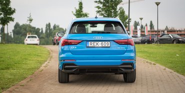 Na most Q3-asból nyilván nem adnak majd el irgalmatlanul sokat, de bár a Q3 több országban is a legjobban fogyó Audi, egy prémiumterméknél épp az a lényeg, hogy ne sok legyen belőle, viszont a profit még durvább százalékokat érjen el. Nem merek belegondolni, mi kasza lehet a Q3-ason, ami végül is egy jobban hangszigetelt, prémiumabbul előadott Tiguan. A turbókék metálfény (felára 132 080 forint) jól is áll az autónak, még az se veszi el az ember kedvét, hogy Ingolstadtban valahogy megtalálták a BKV buszaihoz tartozó színkártyát.