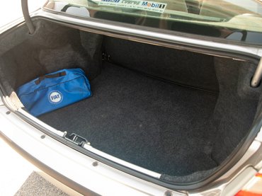 Az Albea esetében ez konkrétan azt jelenti, a tengelytáv két centivel rövidebb, mint a Fiat Puntóé, maga az autó viszont a nagyobb hátsó túlnyúlásnak köszönhetően bő harminccal hosszabb. Emiatt kapunk egy 515 literes gödröt csomagtér gyanánt. Ha tehát a Puntóhoz hasonlítgatunk, az Albea bár nem is tetszik annyira, nem is kéne annyira, de teljesen megértem.