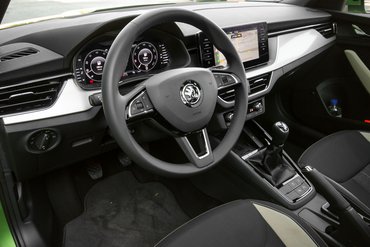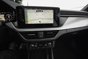 Sajnos a Škodát is elérte a fizikai gombok száműzésének szele, öngerjesztő folyamat indult meg. A szellőzés irányításának egy része már csak menükben való turkálással érhető el, ezért a gyár fejlesztőcsapata Laura, a hangfelismerő rendszer fejlesztésében nyújt könnyítést. Laura hat nyelven ért, és nem csak parancsszavakat, hanem szabadon lehet utasítani. Többen próbálkoztunk, de egyelőre maradt a menüben keresgélés, mert Laura valószínűleg egy vidéki kisváros szomszédasszonyának algoritmusát kapta. Ha nem értette az utasítást, akkor fülelt, csöndben várt, majd vagy a törlés utasításra, vagy a beszűrődő magyar szavakból próbált - a navigáció megnyitása után - utcaneveket keresni, ezzel megakasztva az addigi munkát a multifunkciós kijelzőn. Laura is szeretné visszakapni gombokat.