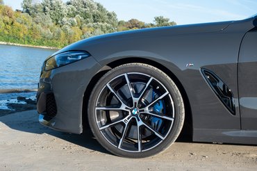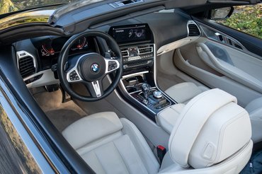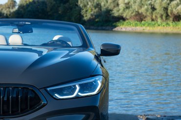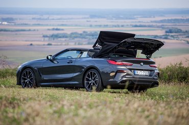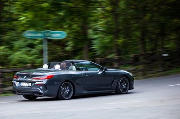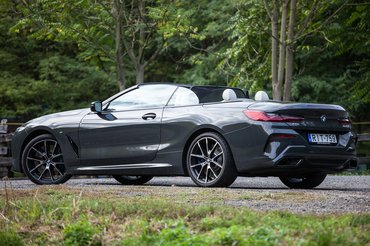 Egy hombár X7-esre is irigy lesz a szomszéd, magunkat pedig áltathatjuk azzal, hogy kényelem és a biztonság vezérelte a vásárlást. A nyolcas kabrió azonban annyira haszontalan jármű, hogy semmilyen átlátszó érvet sem lehet mellette felsorolni. Kívül nagy, belül meg kicsi, sárnehéz, ráadásul ez itt még dízel is. És éppen a felsorolt rossz tulajdonságai miatt lehet nagyon szeretni. Először is attól ilyen szép, mert ilyen nagy. Egyszerűen megural a méreteivel, és minden szögből nézve hibátlanok az arányai. Annyira ügyesen keveri a klasszikus BMW-jegyeket a modern megoldásokkal, hogy még az M csomag kamurácsait és az elnagyolt kipufogó-végeket is elnézem neki. A nyolcszázezres felárral rendelhető Dravit-szürke fényezés csak napfényben mutat jól igazán, akkor viszont nagyon.