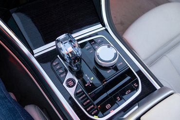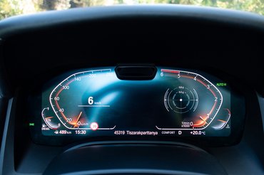 Az I-drive vezérlő rezgetéssel is visszajelez, a tetején pedig rajzolni lehet a betűket navigációhoz. Nem friss tudomány egyik sem, viszont kifejezetten kiforrott a működésük. De ha áll az autó, sokkal egyszerűbb a menüben közvetlenül az érintőkijelzőn barangolni. Ami viszont idegesítő, hogy az indukciós töltőként is szolgáló tároló elé tették a normál USB-csatlakozót. Ha ott van a telefon, akkor útban lesz a pendrive-nak, vagy bárminek, ami be van dugva.