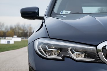 Kifejezetten jól passzol a metálkék fényezéshez az ablakokat és a veséket keretező króm díszléc, és az első-hátsó lámpák alá pakolt funkciótlan króm cápafog. Bár nehéz pontosan tetten érni a változásokat az elődmodellhez képest, sokkal modernebbé vált az összkép, egy szempillantás alatt eldönthető, melyik az új. Egyedül a hirtelen lecsapott orr-rész töri meg kicsit a dizájnt, de ennek vélhetően örülni fog az a néhány gyalogos, akiket pont 3-as BMW-vel ütnek el.