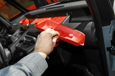 Az utastér, ha lehet, még messzebb került a tanulmánytól. Az ajtók nyitására primkó hevederek vannak belül, kívül meg az ujjtöréshez is elég erővel nyomandó gombok, mint egy Wartburg csomagtartójánál. A belső anyagminőség olyan, mintha slaggal tisztíthatóra tervezték volna, ami egy autómegosztásra is szánt modellnél reális szempont. Van pár színes, kivehető tároló modul a műszerfal tetején, egy mobiltartó a kormány mellett, tárolóháló az ajtókon – és ennyi, még jó, hogy a mobil elemek színe megválasztható. Az az utast valamennyivel hátrébb ültették a vezetőhöz képest, mint valami ralinavigátort, hogy vállban jobban elférjenek egymás mellett. Letekerhető ablak nincs, csak felfelé nyíló üvegszelvény, mint a Citroën Kacsa ablakainál.