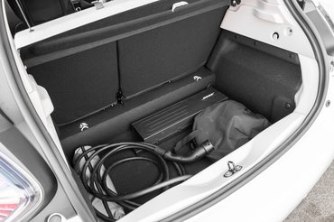 Viszont azt el kell ismerni, a Zoé nem túl tágas. Mivel az akkucsomag a padló alatt lakik, elég magasan vannak az ülések, az ember kicsit SUV-osan ücsörög a bakon, mint mondjuk a Capturben. A hátsó sorban, ha a vezetőülést magamra állítom, már csak úgy férek el hátul, hogy a térdem a támlához ér. És a 173 centimmel nem vagyok egy langaléta. A csomagtartó literre mérve nem kicsi (338 l), viszont látszik, hogy a dupla padlót nem adták oda hozzá, hanem kiegészítőként kell külön megvenni. Így à la nature ott figyel a lecsavarozott mélynyomó, illetve hempereg(nek) a töltőkábel(ek) szabadon.