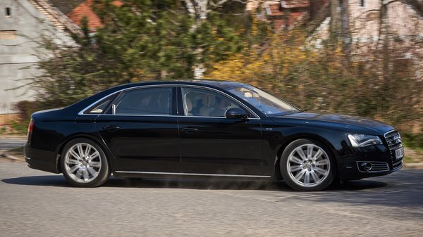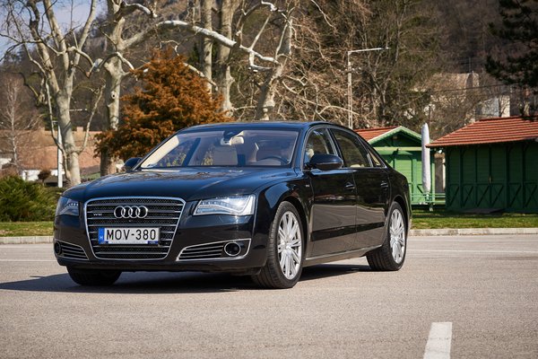 Ez a 2012-es A8 harmadik generációs, mégis D4-nek hívják, ugyanis az első A8 elött már ott volt az Audi V8, azzal indult a D kategória. Az első A8 tehát a D2, ami bevezette az alumínium-karosszériát, melynek köszönhetően ez az A8L könnyebb egy hasonló Mercedesnél vagy BMW-nél, bár még így is két tonna fölé nyúlik. A W12 motor 2001-ben érkezett, de a D4 nem az eredeti, hatliteres változatot kapta, hanem a továbbfejlesztett, 6,3 literes FSI-t. Közvetlen befecskendezéssel kerek 500 lóerőre nőtt a teljesítmény (450-ről), miközben a fogyasztás állítólag csökkent, gyári ígéret szerint akár 12 l/100km körüli átlagra. Az Autócentrum Rómaitól kipróbálásra kapott kocsiban mindenesetre 14,5 litert írt a Bordkomputer hosszú távú memóriája, de mondom, ennek semmi jelentősége. Ilyen autót kizárólag olyan ember engedhet meg magának, akinek 20 literes átlag sem fáj, és ha sokat totyogunk városi dugóban ezzel az autóval, lesz is annyi.