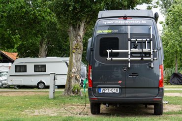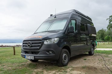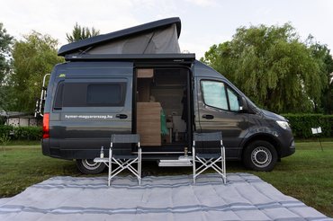 Aztán persze egy zárt furgonnal végigtoltam egy Sziget fesztivált, és érkezett egy félintegrált lakó is hozzám, amivel a TB24-en púposkodtam. Végül megérkezett a klasszikus furgon alapú lakó, véletlenül szintén Grand Canyon felszereltségben. Kinézetében hagyományos Sprinter furgon, de hátul elég furára sikeredett, hiszen az ágynál mindkét oldal kidudorodik. Ennek oka, hogy a Sprinter még mindig igen karcsú, de mivel a Hymer mindenáron akart egy magasabb kategóriájú lakófurgont, így csak ilyen extra dudorokkal fér el egy rendes ágy.