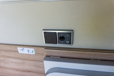 Vadkemping és menet közben a kiépített aljzatokban nincs áram, csak amikor felcsatlakoztatjuk a hálózatra az autót. Hogy azért ekkor se maradjunk 230 volt nélkül, akadt egy inverter a kocsiban, amivel töltheti az ember mondjuk a laptopját, bónuszként két USB csatlakozóval a mobil eszközökhöz.