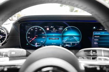 Feltűnhet még, hogy eltűnt a tekerőkapcsoló, és csak a tapipad maradt. Emelett a dupla kijelzős MBUX műszerfal is helyet kapott, ami igény szerint 10,25 és 12,3 hüvelykes panelekkel érhető el.