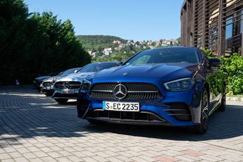 Ha már hibrid, nem csak lágy verzióval rukkolt elő a Mercedes, hétféle plug-in változatot is piacra dobnak - köztük összkerekes és kombi kivitelt is. A tesztvezetésre is hoztak konnektoros modellt, és biztosan érdekes lett volna próbálni, de nem annak a modellnek a kulcsát húztam ki a tombolaszerű sorsoláson az üvegtálkából. Egyáltalán nem bánom.