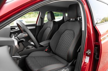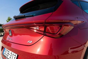 A tengelytáv ötcentis növekedése az utastérnek nagyon jót tett, a Seat úgy is hirdeti, hogy a kategória legjobb belsőtere. Nem ítélkeznék, de hátul meglepően kényelmes - két embernek, a középső hely inkább dísz a kardánalagút miatt - mind láb, mind fejügyileg. Utóbbiért az is felelős, hogy viszonylag mélyen vannak az ülések, de ez nem vesz el semmiből, hiszen nem lőrés nagyságúak az ablakok, még ha nem is lehet teljesen lehúzni őket. A hátsó és első ülések osztoznak továbbá az izgalmas textúrán és ebben az esetben a FR modell sajátján, a piros cérnán, ami a kormányon és a váltón is megtalálható. Apróság, de a piros külsőhöz tökéletes.