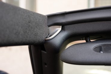 Igen, az tény, hogy a karosszéria kismértékben meggyengült a tető elvesztése miatt, még ha merevítéseket is tettek bele, alul, de ez csak tesztelői sirám. Mert persze, ha rázós úton fogom a szélvédőkeretet, vagy nézem a belső tükörből a hátsó fejtámlákat, látok, érzek beremegéseket, de ezek mértéke nem akkora, hogy jelentősen befolyásolná a Mini-architektúra finom kezességét, igazán fasza úttartását.