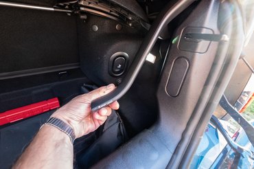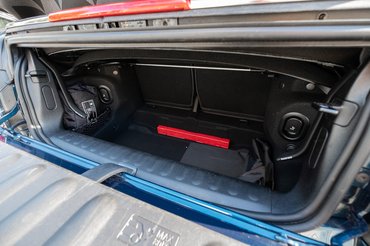 No, igen, volt itt szó a csomagtartóról. Az nem valami tágas, hiába lett az új verzióé 20 literrel nagyobb, ugyanis 215 liter csak minimális pakkok szállítására elég, ha pedig valaki lenyitja a tetőt, akkor van ott egy kis elválasztó lap, amit ott biztonságból alsó helyzetbe kell tenni, olyankor 160 literre nyomorodik az egész. Ráadásul még az ajtó is kicsike. Még szerencse, hogy a hátsó támlák ledönthetők, így mód nyílik némi befelé terjeszkedésre, bár szerintem a funkció inkább arra jó, hogy kialakítsunk egy második csomagtartót az első ülések mögött.