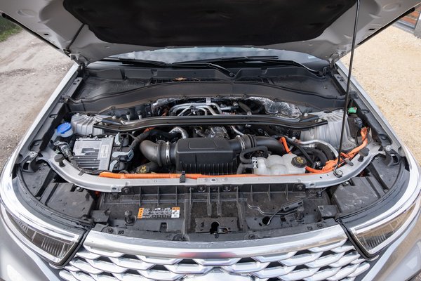 A váltó maga leginkább akkor van elemében, ha a benzinmotor működik, viszont elektromos üzemben eléggé bénán, rángatva vált. Az Explorer nagyon csendes, de annyira, hogy a hátsó klíma zúgása néha már zavaró, nagyobb „gáz” (vagy mi?) adásakor pedig a villanymotor távoli, fura, vonyító hangja kicsit olyan, mint egy megbokrosodott önindítóé. De persze a váltó felgangol, és azonnal elhallgat. Az Explorer vezetésében az volt még szokatlan, hogy az emberi közlekedés tartományait a gázpedál első centiméteres útján elintézi az ember, vagyis nehéz finoman elindulni. Én az Eco vagy a nedves-csúszós útra szánt menetprogramokkal szelídítettem meg. Nagyon menni sokkal könnyebb vele, 6 alatt van százon, ami nélkülözhetetlen manapság.