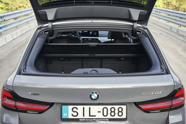 Az viszont nagyon tetszik, ahogy az 530d xDrive Touring mozog. Meg sem próbálja letagadni méretét és tömegét, hanem felvállalja, és kifejezetten nagyautós. Már szinte ring, de azt még pont nem, csak nagyon finoman, szó szerint rugózik. Ennek ellenére nagy tempónál elképesztően stabil, a mérnöki leleménynek, meg az adaptív futóműnek köszönhetően. Hát itt tart a tudomány, tud valóban két urat szolgálni a kombi felfüggesztése, és ebben biztosan szerepe van az alacsony súlypontnak is, mert egy bölény SUV nem lehet ilyen jó, Porsche Cayenne-en innen. Autópályán nincs kérdés, csak söpri a belső sávot, sőt még szűk országúton is olyan tempóval kanyarodik, úgy gyorsul és lassul, mintha a fizika csak egy másik dimenzióban számítana, ebben nem. A dízel akkor sem hangos, ha lehívjuk a teljes teljesítményt, a szél- és gördülési zaj visszafogott, tulajdonképpen bármilyen sebességnél gyönyörű vezetni és utazni az 530d-ben. Ráadásul a BMW Driving Assistant a sofőrt is félig utassá egyszerűsíti, mert egész kiválóan boldogul a sáv- és távolság tartással, ha jól felfestett úton járunk. Még a sebességhatár kijelzéseket is lereagálja, szóval amíg nem kell letérnünk az adott útról, boldogul.