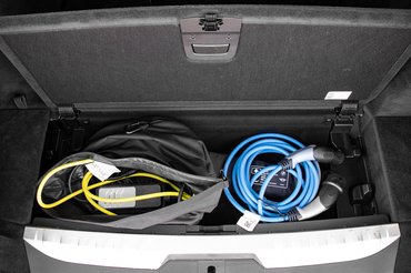 Igyekeztek okosan hizlalni, ezért a 12 kWh (nettó 10,4 kWh) kapacitású lítiumion akkumulátor a hátsó tengely elé, a 40 literes tank pedig az ülések mögé került. Magasabban van a csomagtér padlója és 410 liternyi hely maradt a csomagoknak (90 litert vesztett). Igen, a csomagoknak, mert a töltőkábelek és adott esetben a takaró roló elfér a padló alatti rekeszben. Persze, ettől még nem mindig volt kedvem a madzagot feltekerni és precízen elhelyezni, inkább behajítottam a táskám mellé.