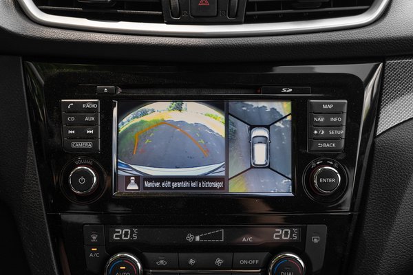 Az igazi gond nem a rozsda, hanem hogy az amúgy bizalomgerjesztő technika körítése sajnos sokkal kevésbé fényes. A konkrét autóban zörgött valami műanyag bal hátul, de ez lehet egyedi jelenség, azonban az általános, hogy a Nissan Connect fejegység képernyője a haszontalanságot súrolja. Már újkorából az maradt meg nekem, hogy feltűnően pixeles, azaz kicsi a felbontása, mostanra meg fakult is kicsit. Ez zenelejátszáskor mindegy, de a tolatókamera képét nagyon lerontja, hiába ad összesen négy kamera 360 fokos lefedettséget, a kisebb akadályokat nem lehet felismerni a kijelzőn. A legmeglepőbb fáradás pedig az, hogy az indexkar végére szerelt világítás kapcsoló meglazult, és indexeléskor könnyen eltekeredett. Figyelemmel a világítás szerepére a biztonságban (látszani!), ez olyan jele az öregedésnek, amit érdemes lenne javítani.