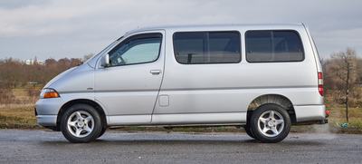 Az más kérdés, hogy a műszaki színvonal hiába magas, akkor is 1995-ben mutatták be ezt a Hiace-t. EuroNCAP töréstesztje nincs is, és akkoriban még mások voltak az elvárások. Egy mai kishaszonjármű tele van aktív és passzív biztonsági elemekkel, hogy a csendes és erős motort, a szinte személyautósan kárpitozott utasteret és a számtalan pakolórekeszt ne is említsük. Ezek innen mind hiányoznak: egy nagy kesztyűtartó és egy dupla pohártartó hajtható ki a középkonzolból, meg az utas előtt van egy ormótlan polc; biztonság terén mindenkinek fejtámlája meg három pontos öve van (ami azért nagy szó!) és egy-egy légzsák jut a sofőrnek meg az utasnak, de ABS, vagy a téli megcsúszásokban segítő ESP már nincs. És persze a motor is viszonylag hangos, ahogy a kerék- meg a szélzaj is. Szóval igényes, tartós, strapabíró konstrukció a Hiace, de a használó itt még kevésbé volt fontos.