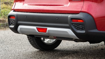 Az orr-részen például a sokszögletű – kissé amolyan hyundai-os – maszkkal, a keskenyebbre húzott fényszórókkal, az ezek közt futó dekorcsíkkal egyszerre láttatják szélesebbnek és magasabbnak. Oldalról ott vannak a jeepes recept szerint szögletesre rajzolt kerékívek, kis trükközés a hátsó kis ablakkal, amely ügye vizuális trükk, a tetővonal tűnik tőle másabbnak. Hátul meg a színtelen búra alá hozott, toyotás-lexusos hangulatú lámpatesteket köti össze vízszintesen egy betét, ebből a szögből is a szélesség érzetét keltve.