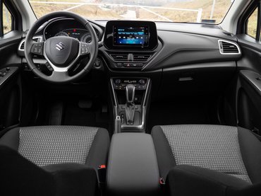 Amúgy odabent is egész jó a térérzet, és a géptetőt a vezetőülésből kémlelve is úgy érezzük, tankban ülünk. Pedig platformazonosságról lévén szó, nyilván valódi különbség nincs az előző S-Crosshoz képest. Az ülések tömése suzukis szokás szerint elég kemény, jó értelemben véve. Szó szerint pont ugyanezt éreztem, amikor a szüleim jó tizenéve kihozták a szalonból a család valaha volt egyetlen új autóját, a vasaló-Swiftet. Amúgy a felhasznált anyagok minősége rendben van, de persze az, hogy egészen pontosan mi vesz minket körül, részben a felszereltség függvénye.