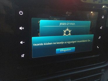 Az infotainmentnek viszont van azért zavaró dilije. Az addig oké, hogy figyelmeztet, menet közben ne taperoljuk a képernyőt, és azzal sincs baj, ha szól, hideg van, lehetséges a lefagyás, óvatosan vezessünk. Csak amikor ez a két értesítés ott is marad a képernyőn, mégis kénytelenek leszünk ott matatni, amíg bezárjuk, hogy lássuk, mondjuk, a navigációt. Oké, plusz pont, hogy ezek az értesítések kikapcsolhatók.