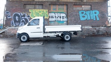 A teljesítménye 106 lóerő, míg a nyomatéka 136 Nm, így nem ezzel fogjuk széttépni az aszfaltot (bár a hátsókerék + üres plató kombóval azért lehet huncutkodni a telepen ;) ), de a jármű alapvetően nem a hosszú távú fuvarozásra van kitalálva (a végsebessége 120 km/h) de a hatótávot az igényeknek megfelelően (a vásárláskor) variálható elrendezésű gáztartályokkal lehet növelni, LPG esetén maximum 720, CNG estén 610 kilométerig. A hivatalos fogyasztás gázból felszereltségtől függően maximum 12,5 liter 100 kilométeren.