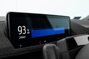 Látványos és alapvetően jó ötlet a hatalmas érintőképernyős tablet a középkonzol helyén, de nehéz olyan pozíciót találni, ahonnan kényelmes kezelni. Talán, ha nem függőlegesen állna, hanem megdöntenék vagy esetleg hajlított lenne, akkor jobban kézre esne. Így leginkább az tudja jól kezelni és látni, aki a hátsó pad közepén ül. A mögötte futó rendszer is lassan, akadozva bootol be, de aztán egyértelműek a különböző menüpontok. A kijelző tetején ott trónol az Apple CarPlay (vezeték nélkül), alatta néhány digitális csempe, majd a kétzónás klíma virtuális panelje az integrált tekerőgomb mellett.
