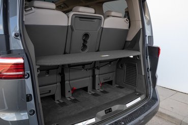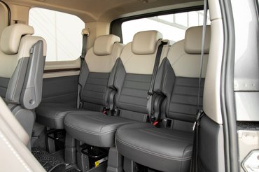 25 százalékkal lettek könnyebbek az ülések, így nem kell hónapokig edzeni ahhoz, hogy megfordíthatóak vagy kivehetőek legyenek. Ahogy a kis asztalka, úgy mind az öt hátsó ülés szabadon tologatható a sík padló sínjein. Ha mindenhol rengeteg lábteret hagyunk az utasoknak, akkor ebben a rövidebbik Multivanban a harmadik sor mögött 46 centiméter hely van még a csomagoknak, ami nem hangzik túl soknak és látványra sem igazán meggyőző, de a hangár is szűkösnek tűnik, ha sok repülő parkol benne, ennyi helyre is bőven lehet bőröndöket sorakoztatni. Amennyiben inkább a raktér kell, mint az utastér, akkor a Multivanben 1346 mm magas, 2425 mm hosszú és a kerékdobok között 1207 mm hely van nagyjából akárminek, a hűtőtől a biciklikig.