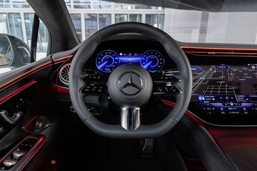 Arra senki se panaszkodhat, hogy kevés autót kap a pénzéért; a 2355 kg-s önsúly méltó az EQE névhez. Részben innen jön a belső combhoz méltón selymes gördülés, meg a nagyon kényelemre lőtt elektronikus csillapításból. Comfort módban annyira úszkál, hogy az talán már túlzás is, de sportban is épp csak annyit feszesedik, hogy vízijártassági nélkül is kimerészkedhetünk az országútra.
