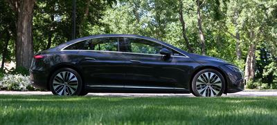 Kigurultunk némán a makadámos utacskán a kastély gyönyörű parkjából, és csak a főútra érve ütött szíven, hogy ezt a súlytalan siklást végig egyenetlen kockakövek hátán tettük meg. Az EQE futáskomfortja káprázatos.