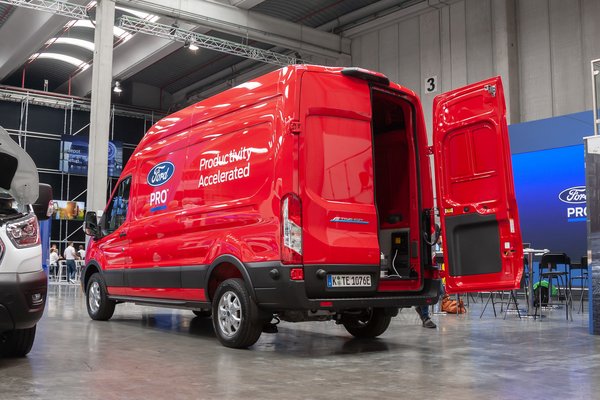 Az E-Transit a belsőégésű motoros verzióhoz hasonlóan háromféle hosszúsággal és kétféle magassággal elérhető. A raktér mérete nem változott a dízelmotoros, hátsókerékhajtású változatokhoz képest. A gyakorlatban ez azt jelenti, hogy a legrövidebb, legalacsonyabb E-Transit 5,53 méter hosszú, 2,53 méter magas, a tengelytávja pedig 3,3 méter. Ez L2H2 változat, aminek a hasznos raktere így 9,5 köbméteres. A leghosszabb és legmagasabb, L4H3 verzió már 6,71 méter hosszú, 2,78 méter magas, a tengelytávja pedig 3,75 méter. Ezekhez az értékekhez 15,1 köbméteres raktér párosul. Az L2H2 B-kategóriás jogsival is vezethető, 350-es, tehát 3,5 tonna össztömegú kivitele 1 tonnával, míg az L4H3 szintén 350-es változata 0,8 tonnával terhelhető. Az L3H2 típusból létezik 390-es és 425-ös kivitel, előbbi 1,2, utóbbi közel 1,7 tonnát vihet, cserébe ezekhez már más jogosítvány kell.