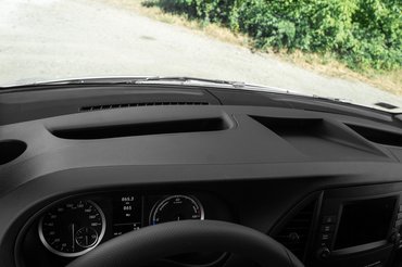 A kilátás a vaskos A-oszlop ellenére is jó, a tolatást pedig kamera segíti - a középkonzolon lévő 7 collos kijelző felbontása nem hozza egy olcsóbb tablet szintjét sem, ami leginkább a 20 milliós vételár tükrében kellemetlen, de egyébként a célnak megfelel. Képes a telefont tükrözni az Apple Carplay vagy az Android Auto segítségével, lehet menedzselni a bejövő és kimenő hívásokat - ami egy munkaautónál különösen fontos.